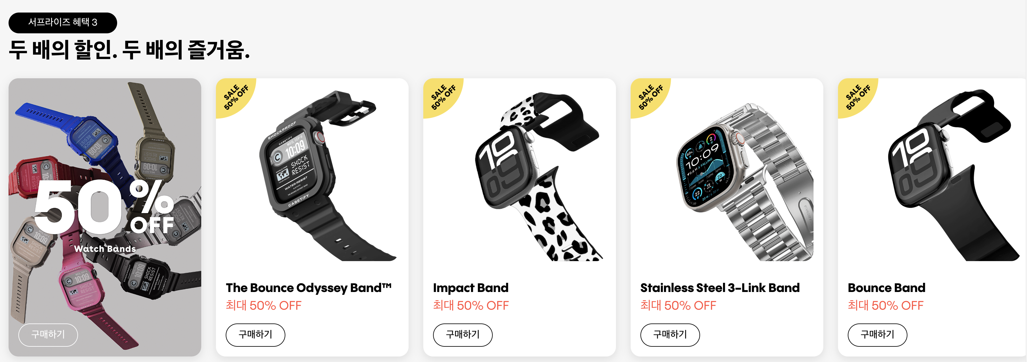 - 대상 제품 : 스마트폰 케이스, 테크 액세서리, 맥북/아이패드 케이스, 충전기, 스트랩, 워치 밴드 등