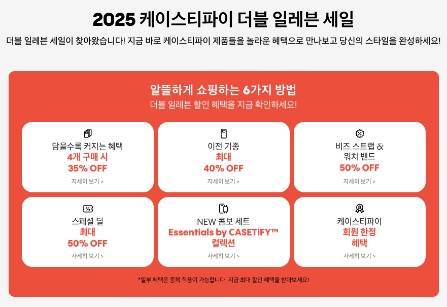 👉🏻 케이스티파이 더블 일레븐 세일 바로 가기