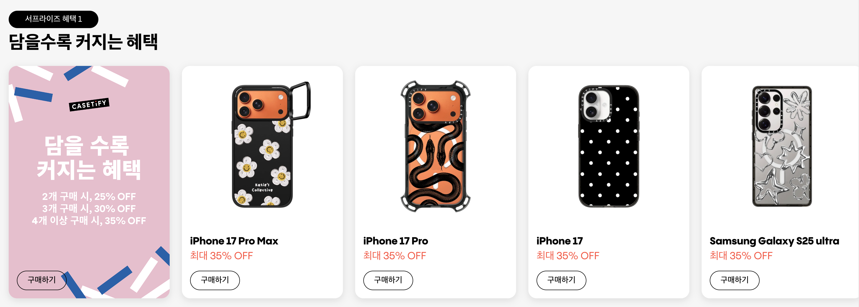 - 케이스티파이 케이스 2개 구매 25%, 3개 구매 30%, 4개 이상 구매 35% 할인!