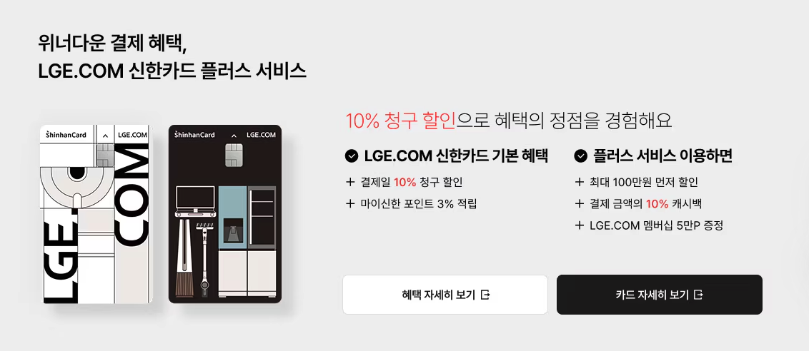 - LGE.COM 신한카드 결제 시, 10% 청구할인