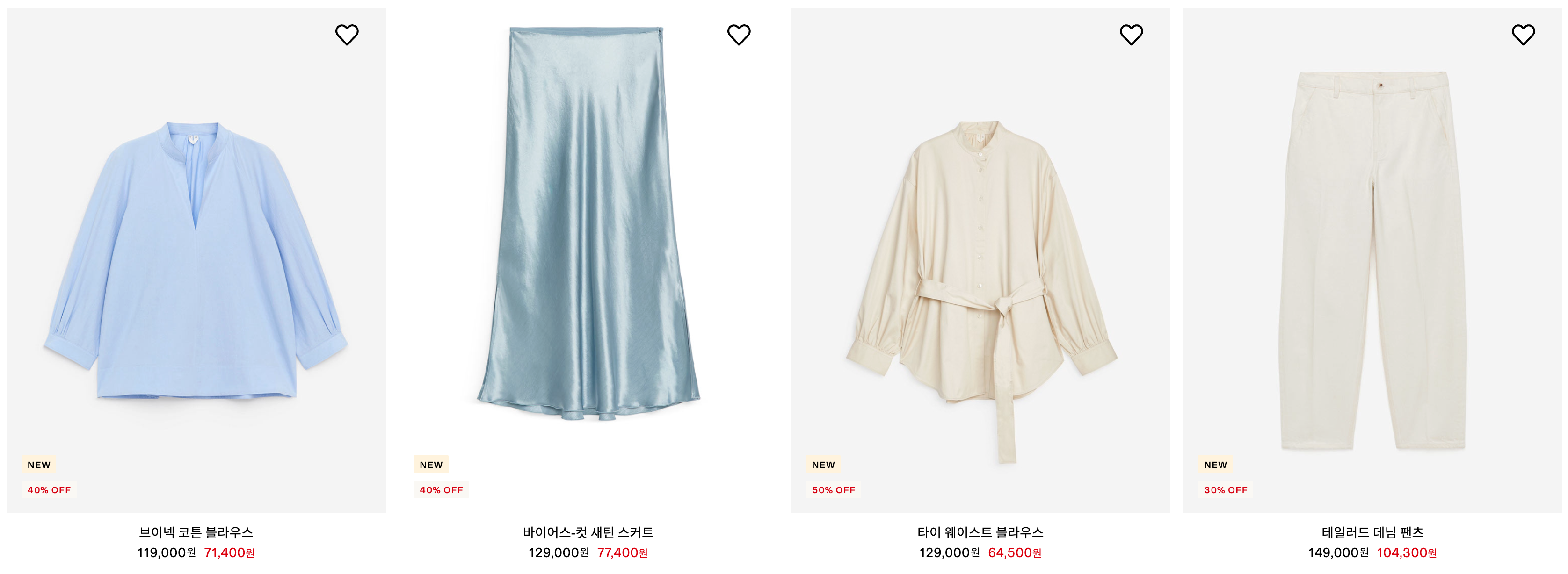 - 아르켓 가방, 아르켓 셔츠, 아르켓 니트 등 인기 상품군 다수 포함