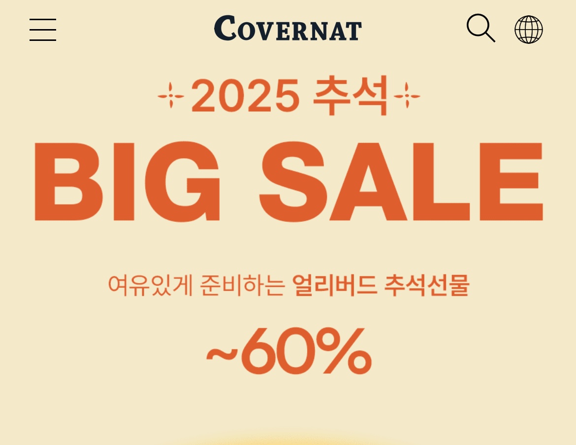 2025년 9월 22일 오전 10시부터 10월 10일 오전 9시 59분까지 진행되는 이번 커버낫 추석 BIG SALE에서는 인기 상품을 최대 60% 할인된 가격에 만나볼 수 있습니다.