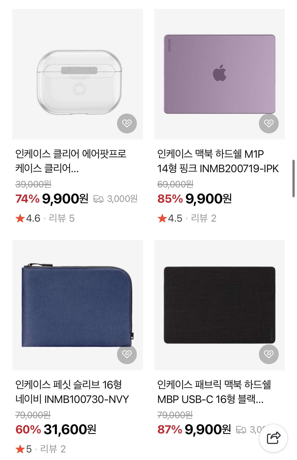 맥북, 아이폰, 에어팟 사용자라면 이미 익숙한 브랜드인 인케이스의 슬리브, 하드쉘, 아이폰 케이스, 백팩 등 인기 제품들을 단기간 동안 만 원 이하 특가로 만나볼 수 있는 기회입니다.
